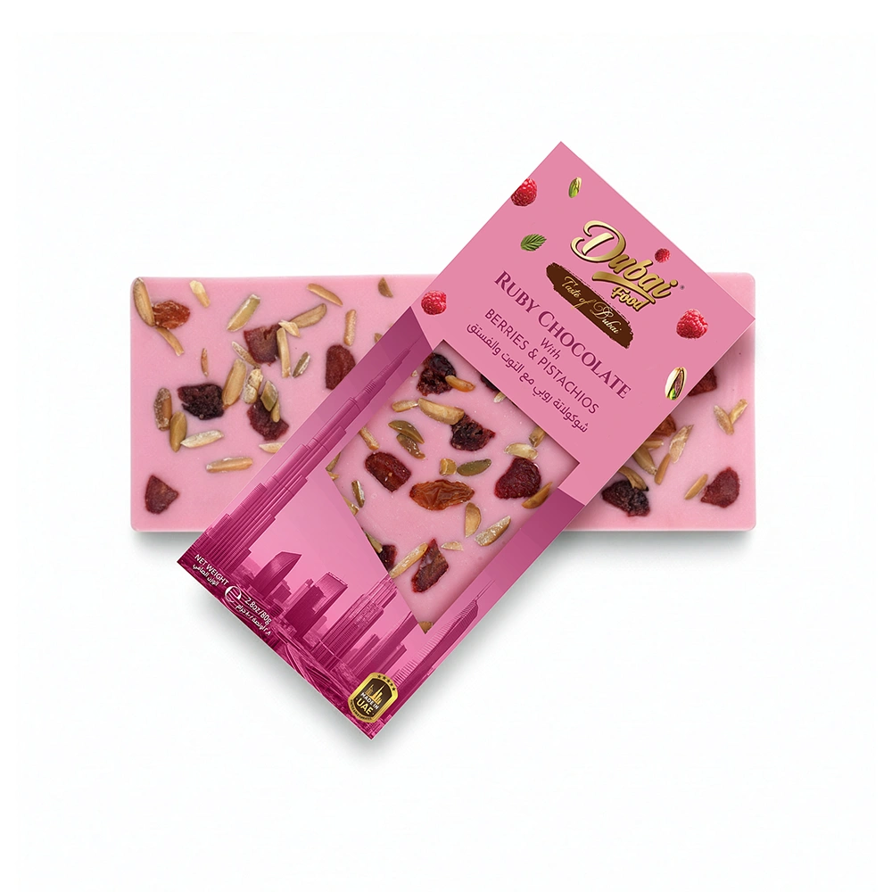 • Dubai Food Ruby Chocolate With Berries & Pistachios 80g