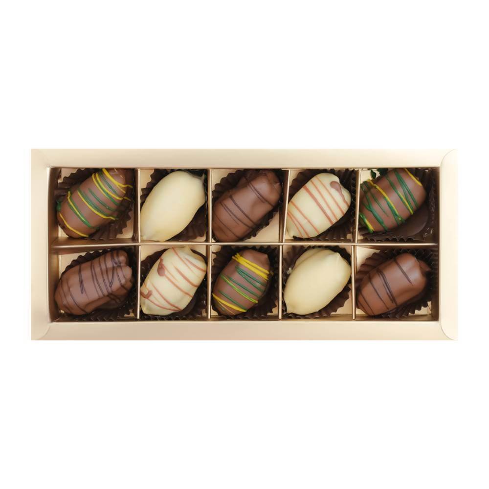Experience the luxurious blend of nature’s finest ingredients with our Premium Dates Chocolate 220GM, a gourmet delight that combines the wholesome sweetness of dates with the richness of premium milk and white chocolates. Crafted with care, this exquisite treat brings together layers of luscious fillings and natural flavors to offer a truly unique indulgence.